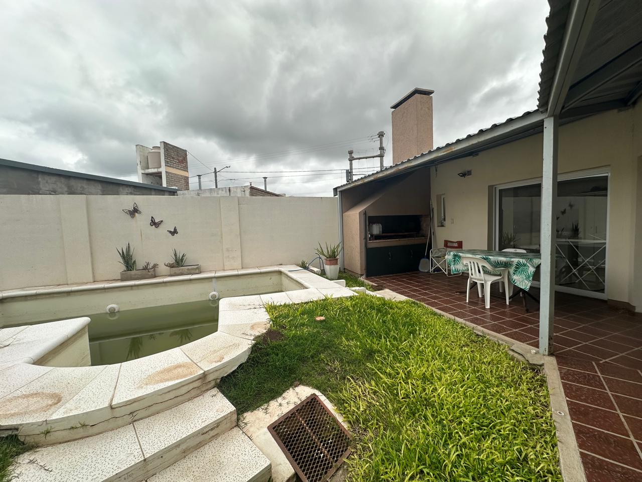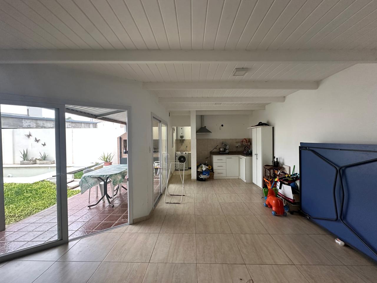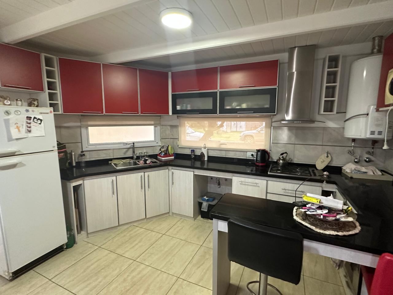 3 dormitorios (uno con vestidor y baño un baño en suite). Living. Cocina / comedor. baño principal. Quincho / garaje con cocina, lavadero y baño. Galería con asador. Patio cerrado con pileta de natación.