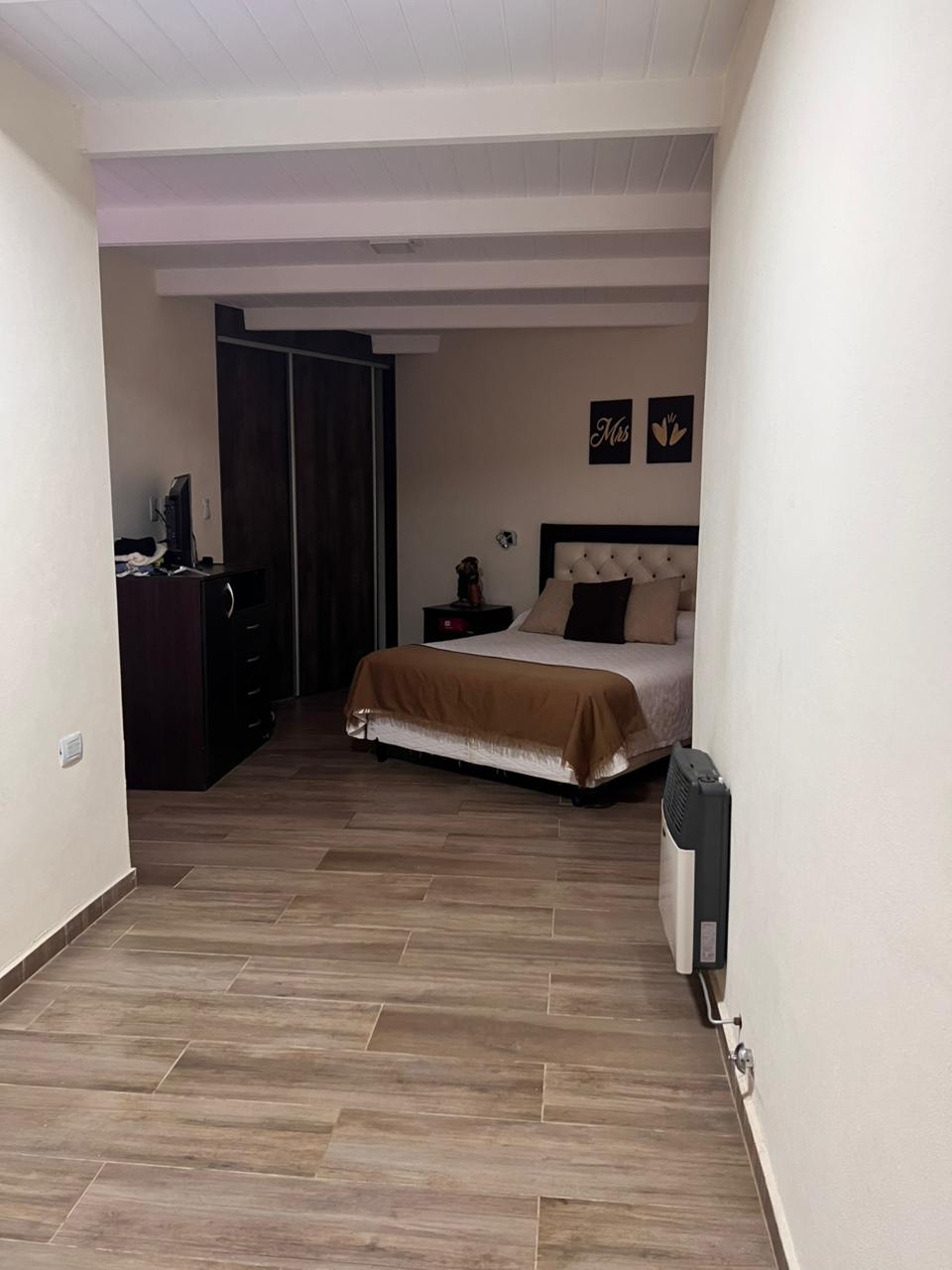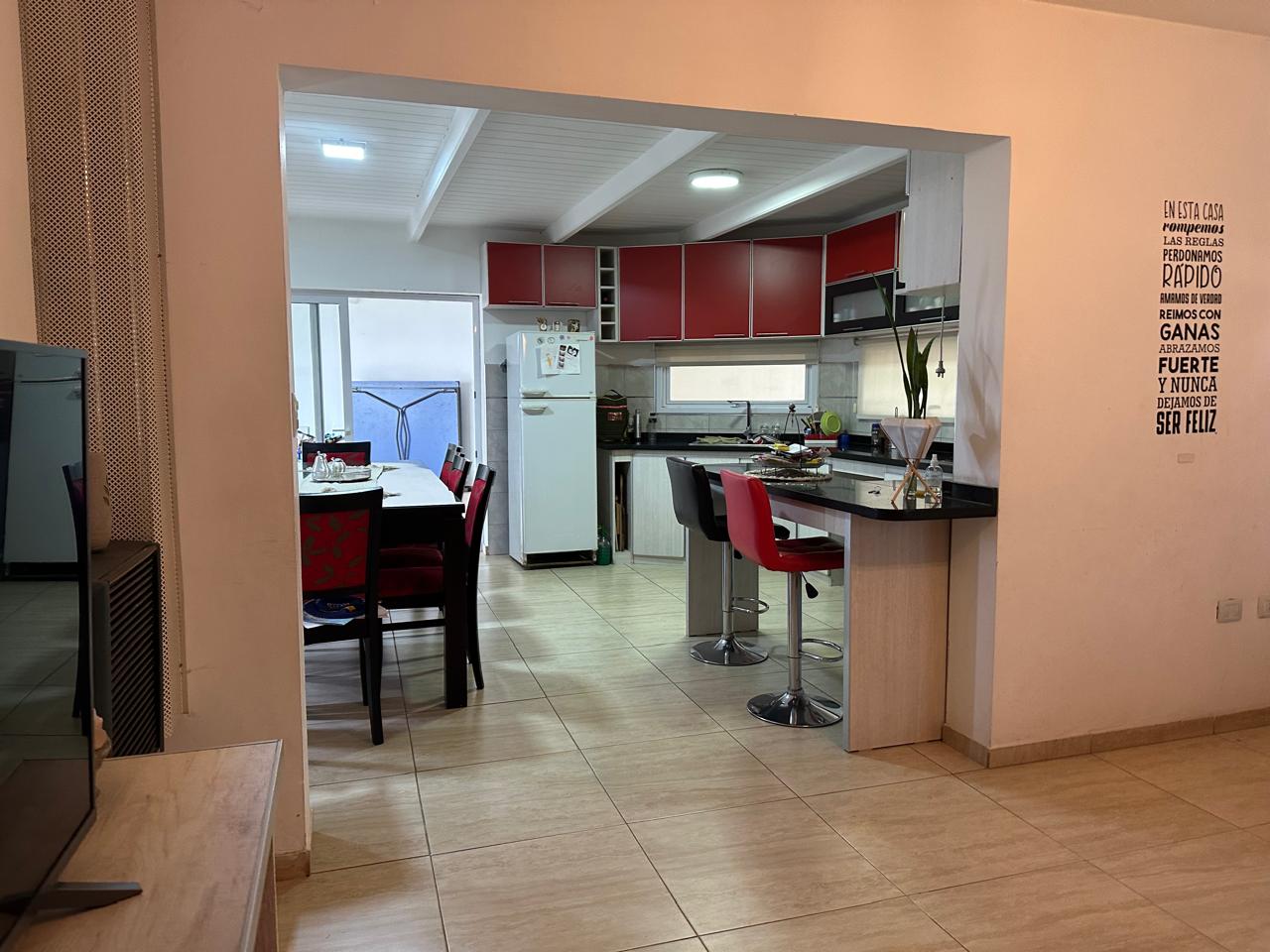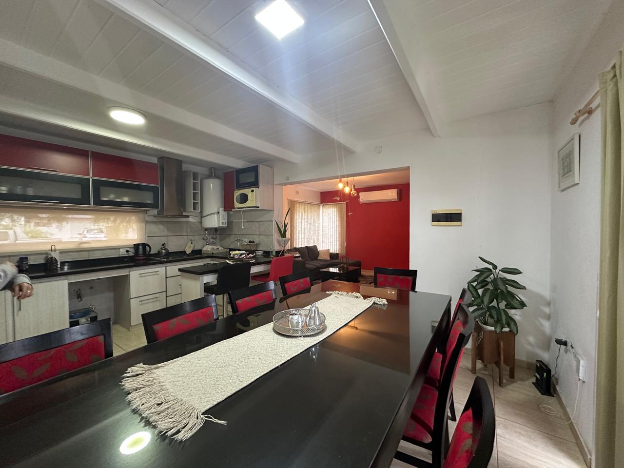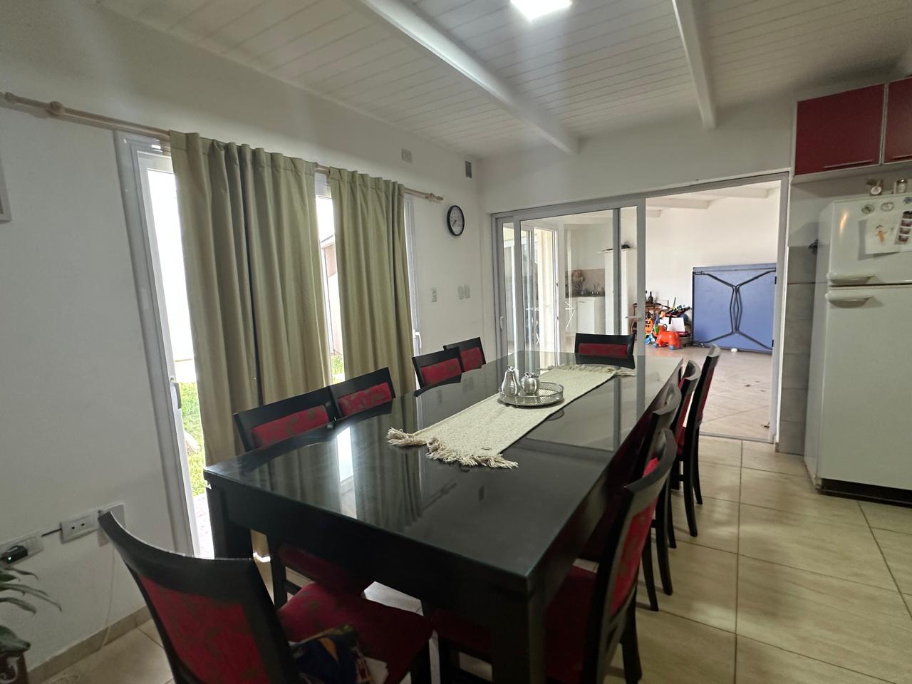 3 dormitorios (uno con vestidor y baño un baño en suite). Living. Cocina / comedor. baño principal. Quincho / garaje con cocina, lavadero y baño. Galería con asador. Patio cerrado con pileta de natación.